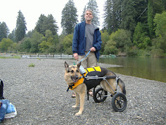 I also regret that I had to keep Alec from playing his favorite games “stick” and fetch, after his back injury, and that I had to keep him from rough housing with other dogs. But I did this for his protection, on the recommendation of several veterinarians and rehab therapists (I got fourth and fifth opinions on that). I really tried to make up for it by taking him swimming all the time, which I thought was a good compromise because he could chase the ball in the water, and taking him to special places and new parks on a regular basis. After he was paralyzed, I vowed never to dwell on the things he couldn’t do. I said I would only focus on the positive - all the things he could still do - and that I would make the most of those. He wasn’t even supposed to be walking, and I tried never to lose sight of that or let anyone feel sorry for him. When people would see him limping along with his little shoe and say “awww, poor dog” I would always say “actually, he is doing great!”